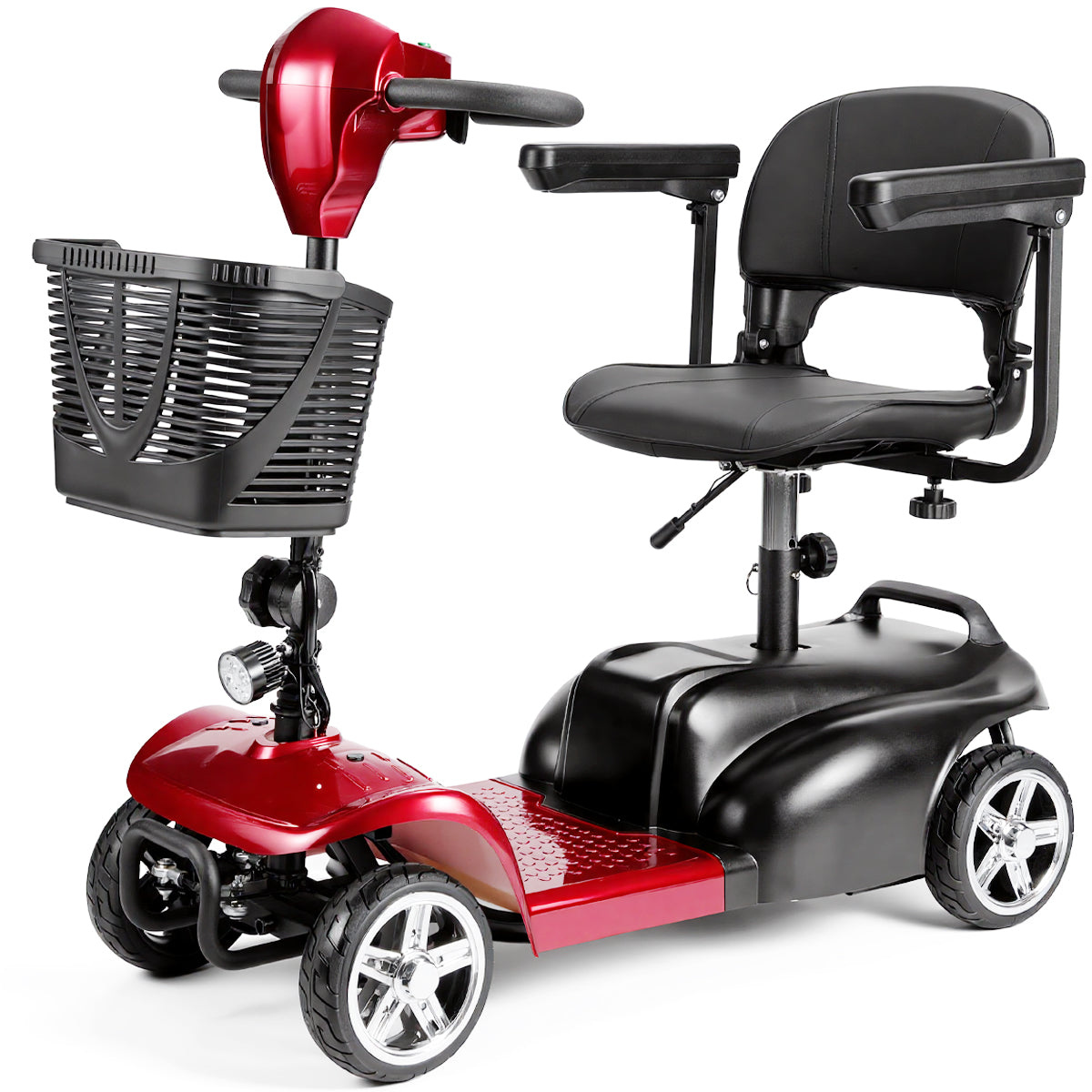 Mobility Scooter for Seniors and Disabled Individuals Featuring Bright Headlights, USB Port, Basket, and Long-Range Battery in red