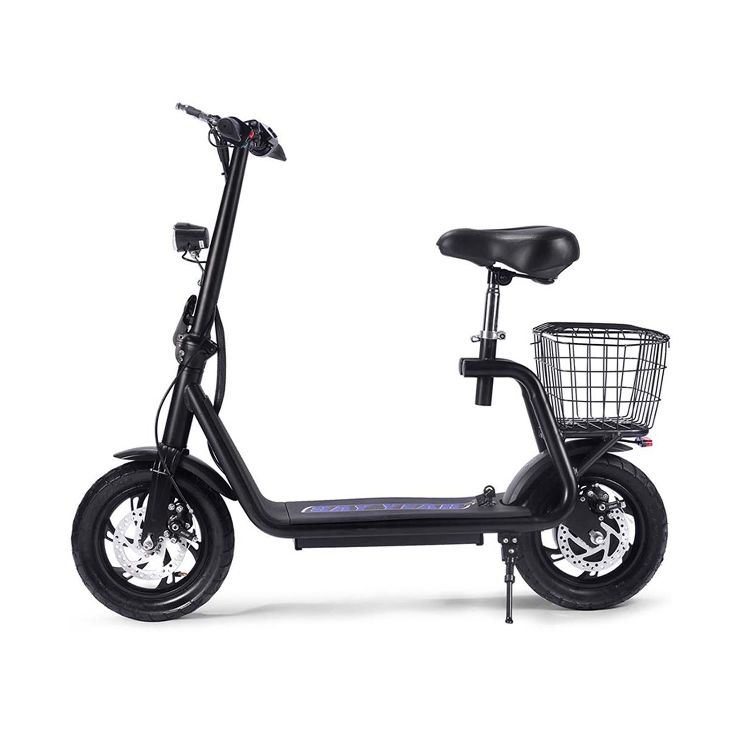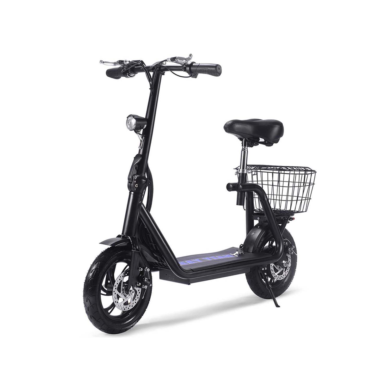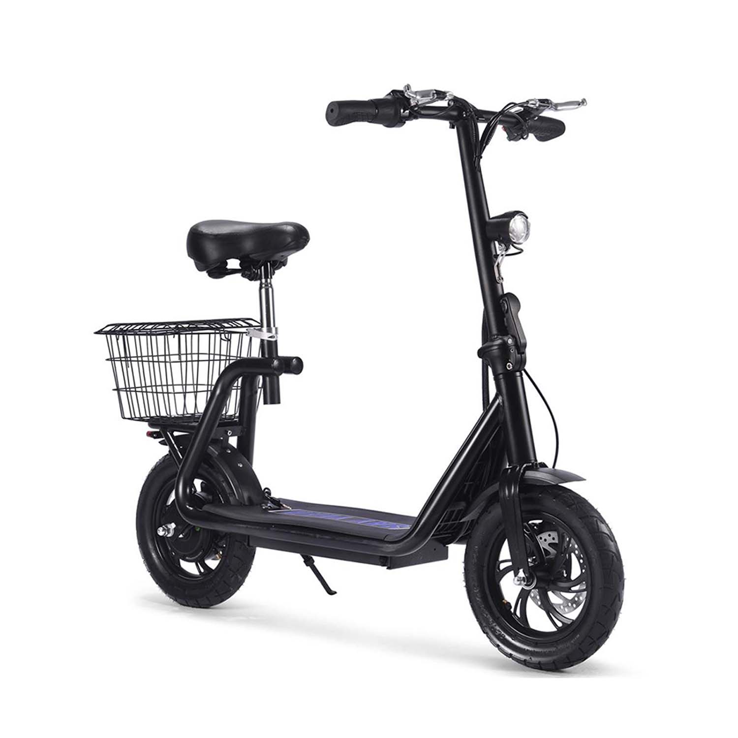 The electric scooter is equipped with a rated 350W motor with a max power of 500W and speeds up to 17.7 MPH. The high-capacity 10.4AH Li-ion battery support travel range up to 15 miles under optimum conditions(Load under 150 lbs). It boasts of a smart battery management system assures the battery safety and extends the battery life. Max. load of 200 lbs but recommended for load under 175 lbs.This perfect electric scooter is ideal for commuting to work and campus commuting.