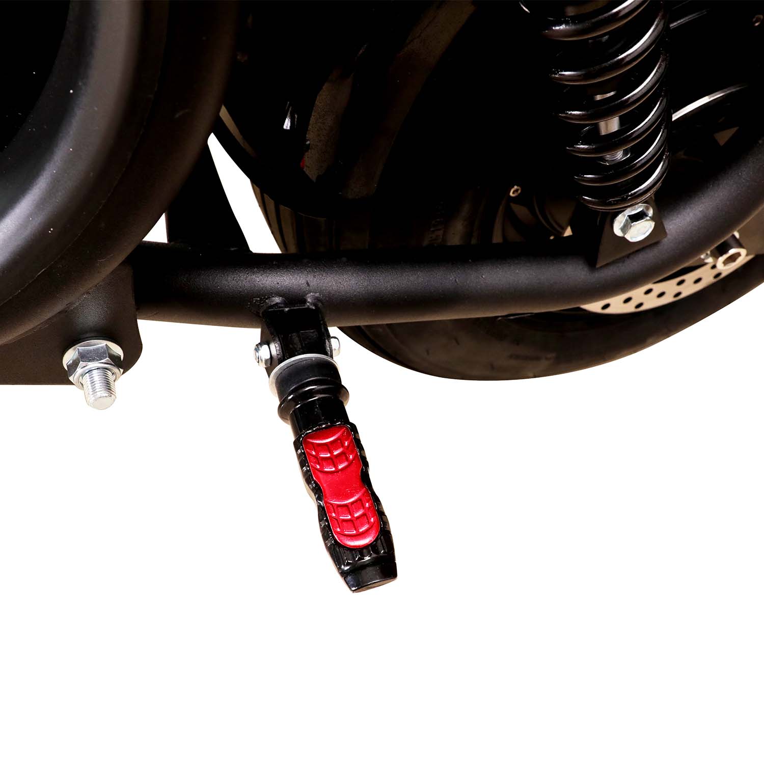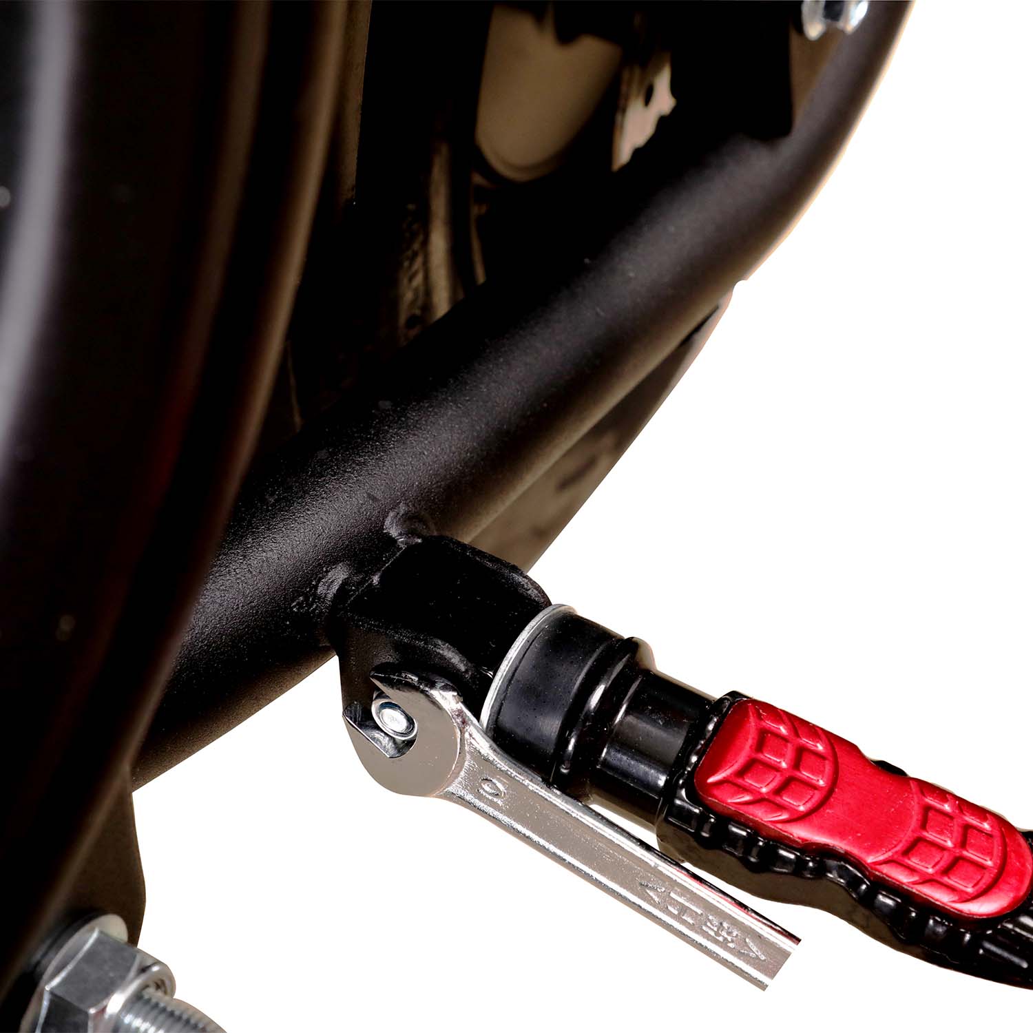 Foldable FootrestNeed to fold manually. Made of high-hardness steel. A sufficiency of area and solidity to support your feet. |