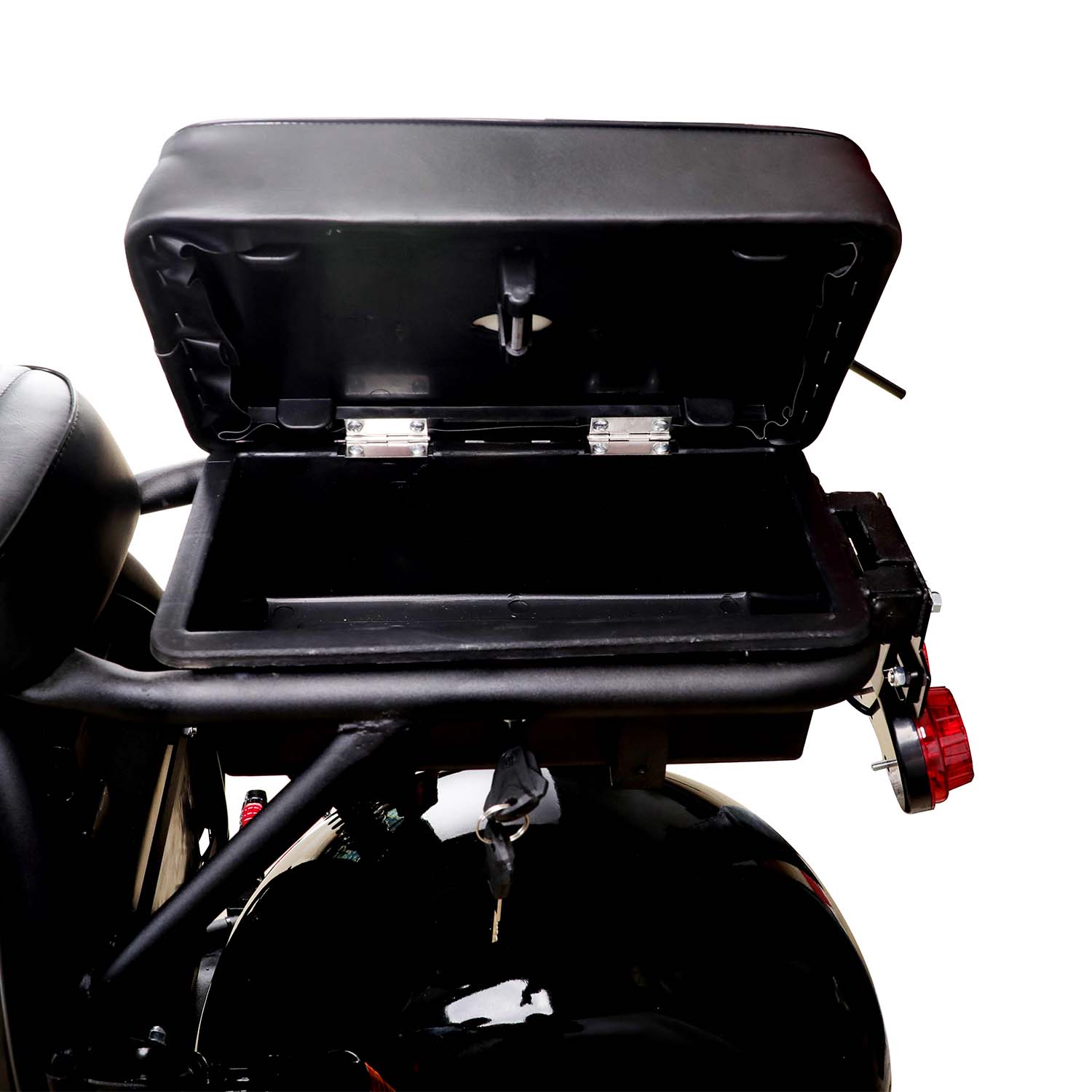 Storage & Comfortable seatComfortable double seat with backrest, and fat tire that provide stability, the ride is both comfortable and exciting. There is a secret storage space under the seat. (After receiving the package, the toolkit and parts are stored here.) |